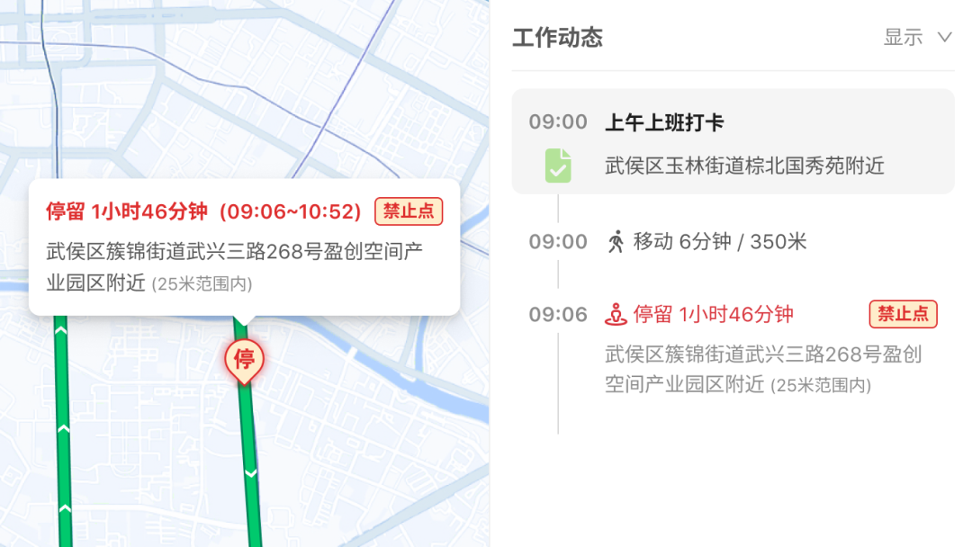 实时记录员工在工作时间内的定位轨迹,并提供精细化外勤管理方案的软件服务。